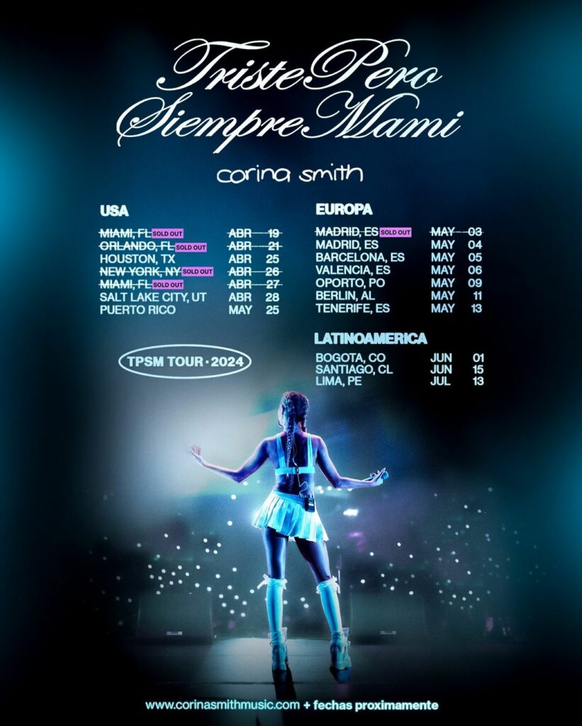 Desde el pasado viernes 19 de abril, Corina Smith inició su “Triste pero siempre Mami Tour” en Estados Unidos, específicamente en la ciudad de Miami, la primera en regalarle un SOLD OUT que la llevó a abrir una segunda fecha que se llevó a cabo el sábado 27 con un público que se quedó sin voz interpretando los temas que han llevado a la venezolana a conectar con miles de personas.