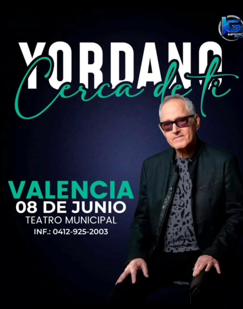 El concierto de Yordano se realizará en Valencia bajo la producción de Imperio Group. Las personas interesadas en asistir a la presentación pueden adquirir los boletos en las taquillas del Teatro Municipal de Valencia. Para mayor información: 0412-925.20.03